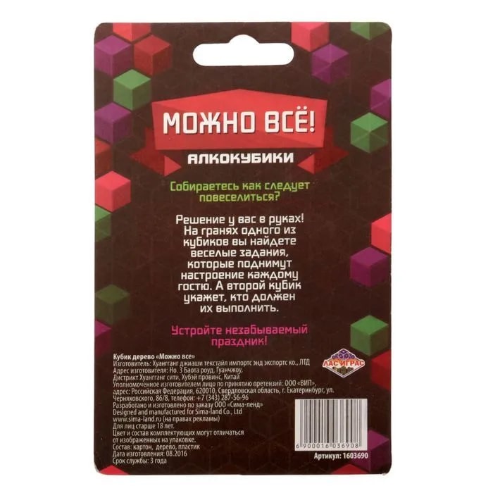 Купить кубик "можно все", алкокубики для принятия решений от 60 руб. с доставкой до пункта выдачи в Евпатории. Интернет магазин ДекаМаркет. Оплата при получении.